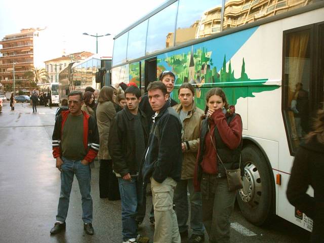 Matinée libre. Sans le savoir, nous venons ce matin de profiter des derniers rayons de soleil de la tournée.Ce soir, c' est le défilé le plus froid et humide de ces 5 jours. Manque de chance pour nous, d' après les indigènes, nous profitons des deux journées les plus froides de cette période hivernale. Confettis et bombes de serpentins en pâte, tout est réunis pour une bonne soirée. N' est-ce pas Joël ? Vraiment sympathique les bombes ! C' est parti pour trois tours de circuit. Brrr... le public est emmitouflé, les majorettes ont les cuisses à l' air et moi, brrr... j' arrive tout juste à obstruer les trous sur mon morceau d' ébène. Pour finir cette journée, un feu d' artifice embrase le ciel de Menton. Quand à nous, on se change et l' on saute dans le car pour être demain matin à l' hôtel "San Vito" dans la banlieue de Vérone. |